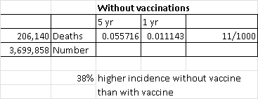 But the above is not a valid comparison, because there were more people that took the vaccine than didn’t. A value representing incidence of deaths for either group is more relevant: